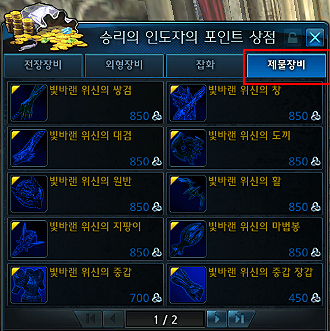 √ 승리의 인도자 포인트 상점에 새롭게 추가된 14단계 전설 제물 아이템