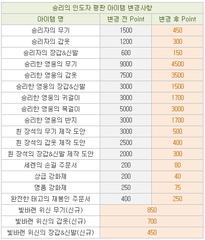 낮추는 형태의 패치와 추가적으로 승리의 인도자 포인트 상점을 통해