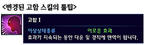 30초의 짧은 재사용시간을 가진 고함에 다운 및 경직에 면역이 되는 이상상태가 추가됨으로