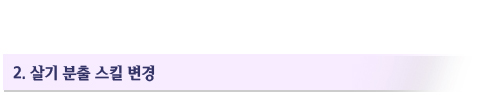 살기 분출의 효과 범위와 지속 시간이 감소한 대신 재사용시간도 함께 감소되었습니다.