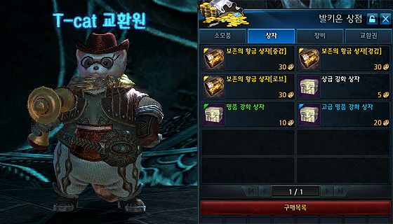 T-cat 교환원을 이용해 황금 실루엣의 외형 변경용 장비를 획득하실 수 있습니다.
