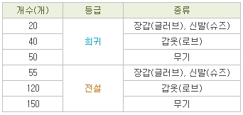 [정기 어린 구슬]은 아이템 개수에 따라 14단계 방어구 또는 무기로 교환 하실 수 있습니다.