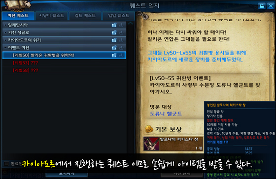 50레벨의 캐릭터가 있다면 대도시 카이아도르에서 미션 퀘스트인