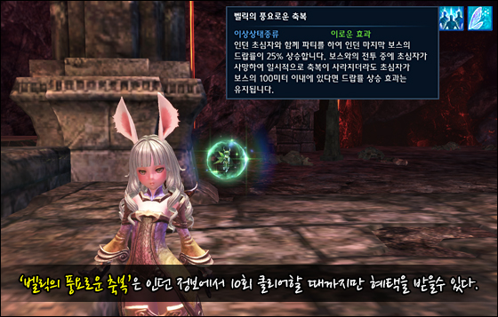 아이템 드랍률이 상승하는 추가적인 버프 효과를 받을 수 있습니다.