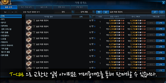 T-Cat으로 교환한 일부 아이템은 교환이나 거래가 가능하므로