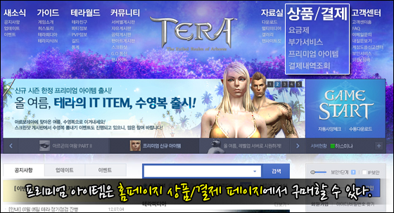 프리미엄 아이템은 게임 내에서 구할 수 없으며, 홈페이지에서 구매 후