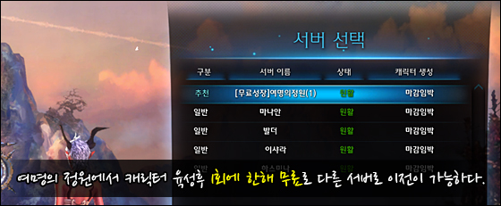 여명의 정원으로 캐릭터를 이전할 수 있으므로, 새로 캐릭터를