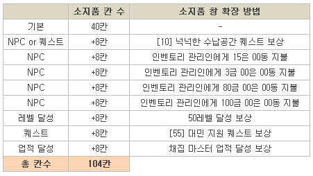 ② 소지품(인벤토리) 확장 보상