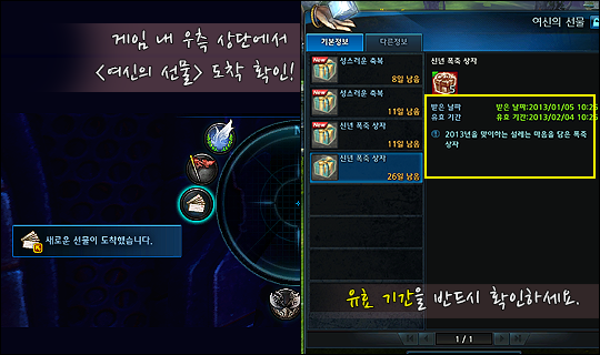 [새로운 선물이 도착하였습니다.]라고 안내가 됩니다.