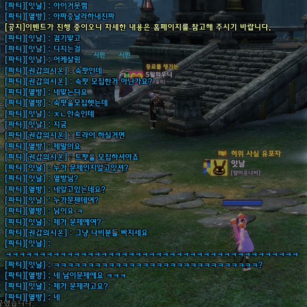 이때부터도 마공2명 그냥 검기랑 주시2타 치는거에 죽고 대박은 부활어글할때 랜튀는게 마공한테 가끔튀는데