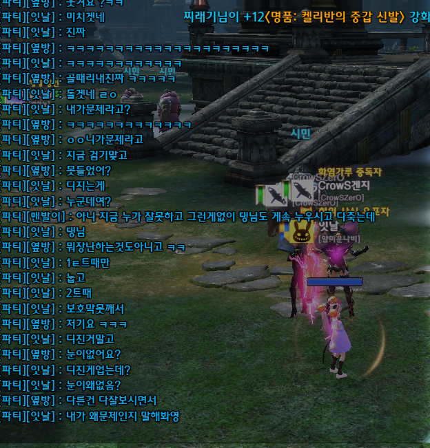근데 이때 다들 보스 극딜을 해야되는데 마공2명이 쫄을 잡고있는거임 . 이떄부터 불안했음;