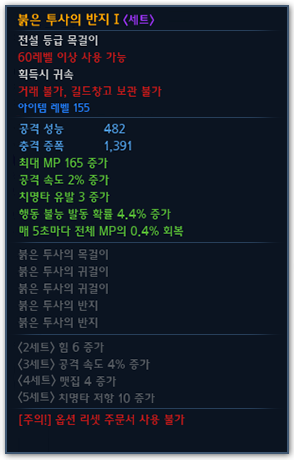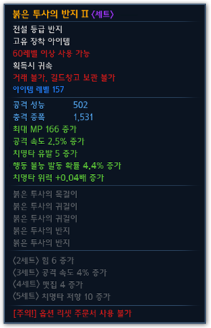 - 탱용 적대치 반지 적대치 대폭향상 (적대반지x2 6%에서 신규적대반지x2 최대 24.5%향상)