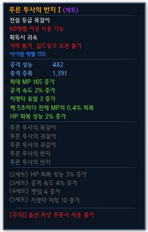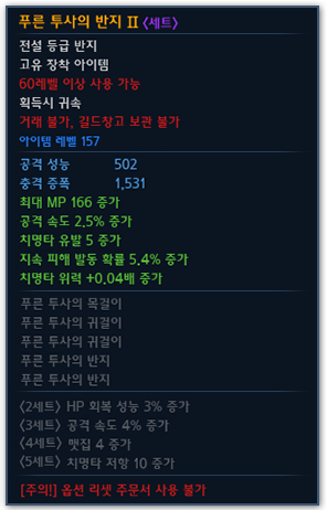 ; PVE는 맷집 증가, PVP 푸른투사는 공속/치유증가지만 PVE와 비교시 기본옵차이 없음