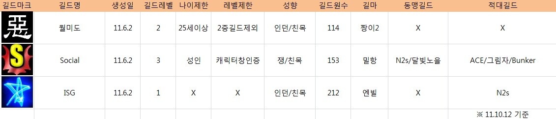 - 길드 소개 목록에 참여하고픈 대표님들은 쪽지 주시면 감사하겠습다