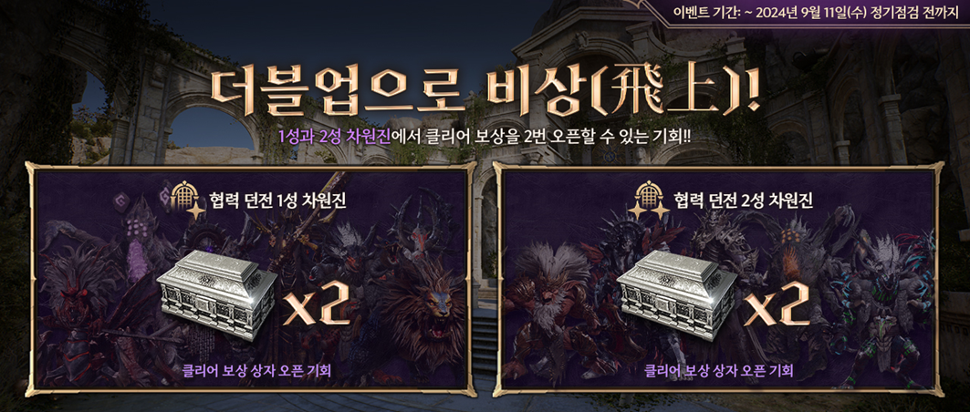 - 3성 차원진 오픈을 기념하여, 1성과 2성 차원진에서 보상을 2번 획득할 수 있는 더블업 이벤트가 시작됩니다.