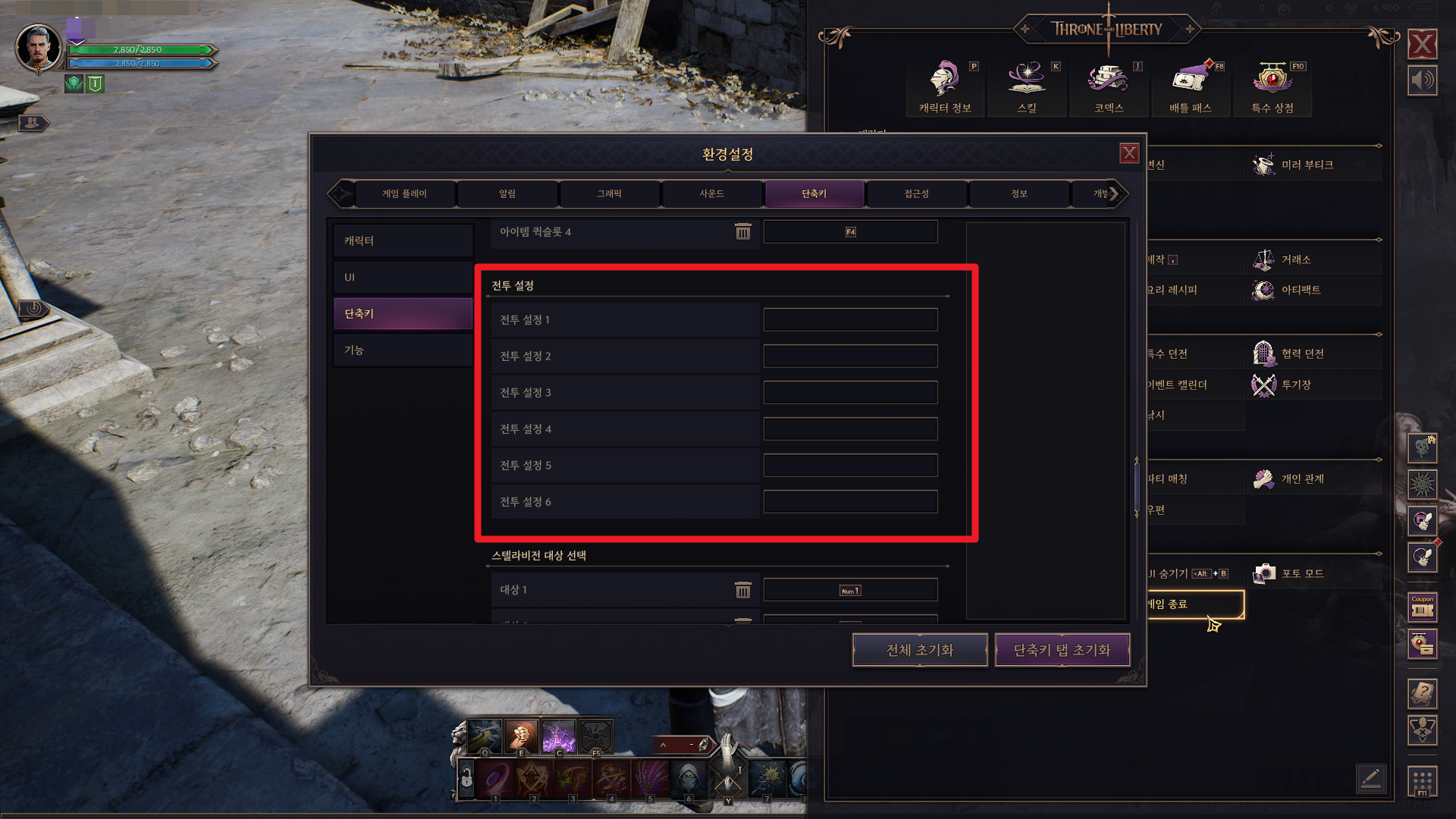 - 전투 설정 변경은 ‘전투 설정’ 창에서 적용을 누르거나, 별도 ‘단축키’를 사용해서 변경할 수 있습니다.