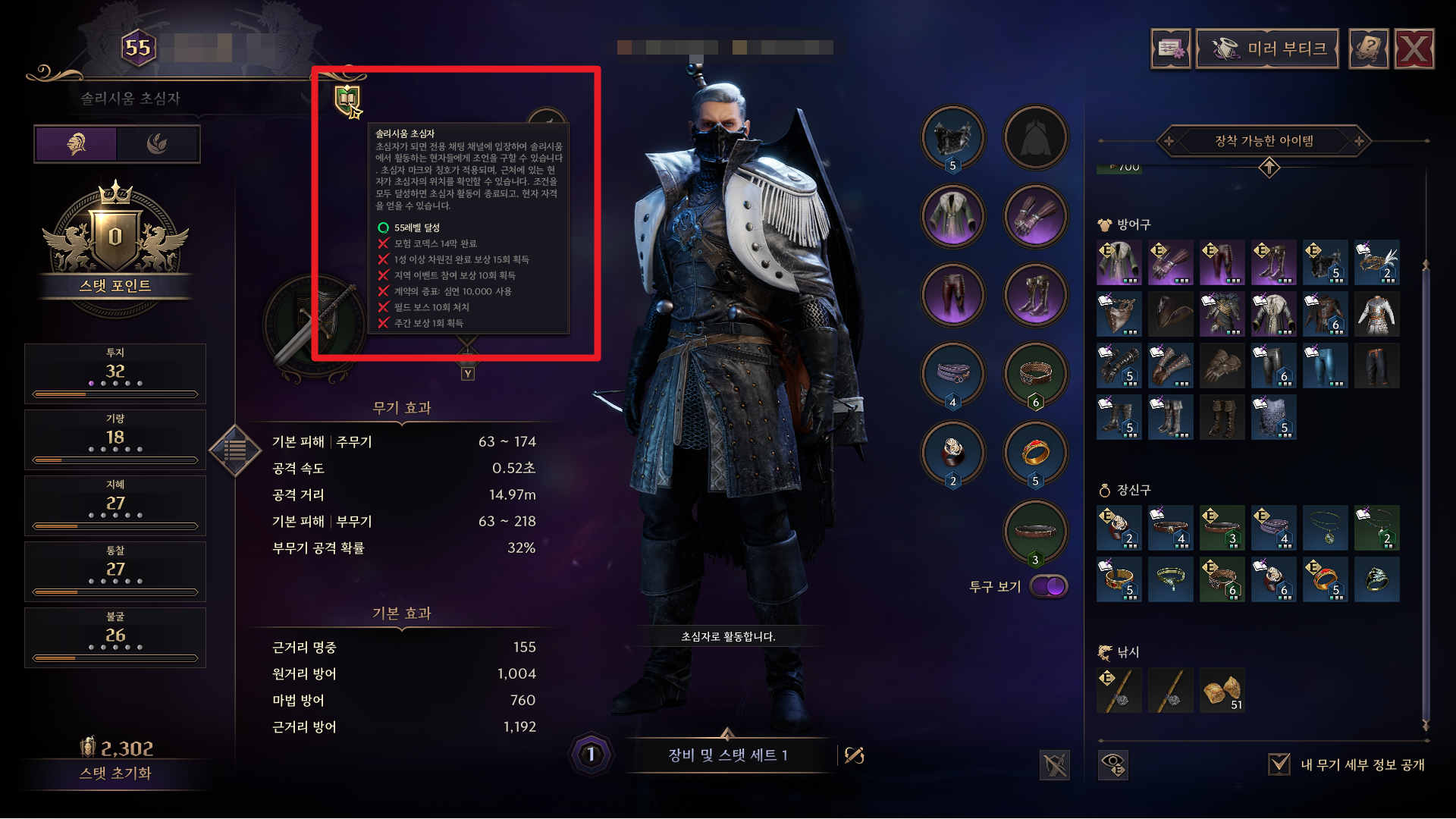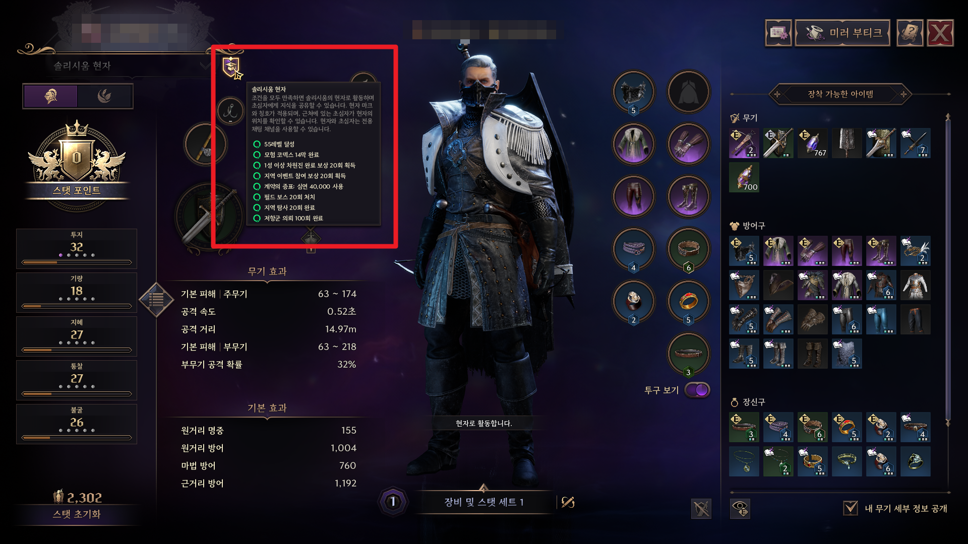 - 숙련된 사용자는 조건을 모두 달성한 후 ‘솔리시움의 현자’로 설정하여 이용할 수 있습니다.