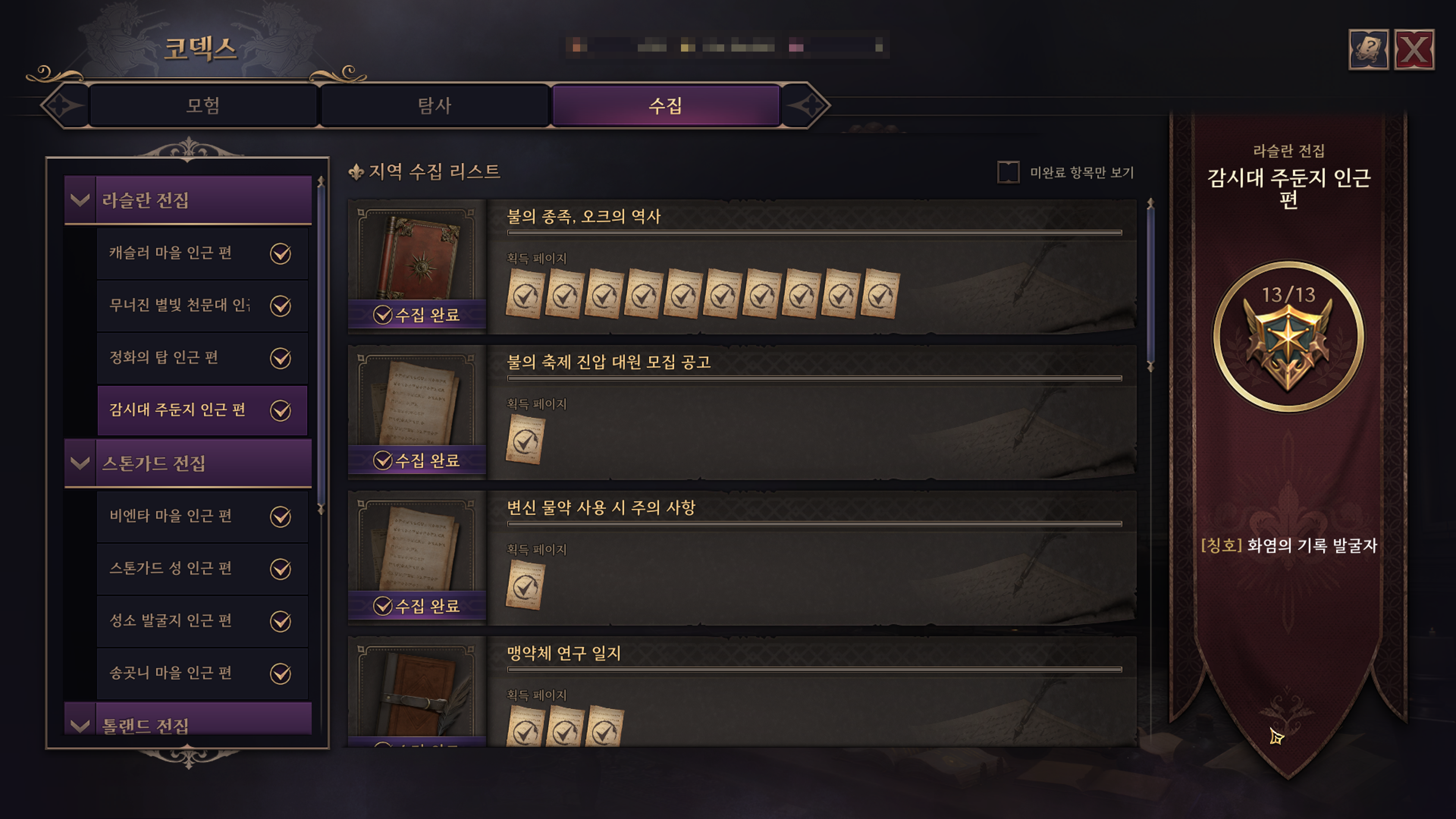 > 탐사 코덱스 지역 20개 완료