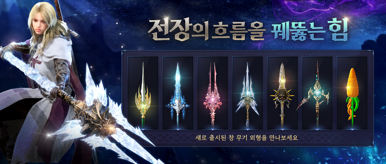 - 신규 무기 출시를 기념하여 총 14종의 창 무기 외형이 7종씩 매주 교차 판매됩니다.