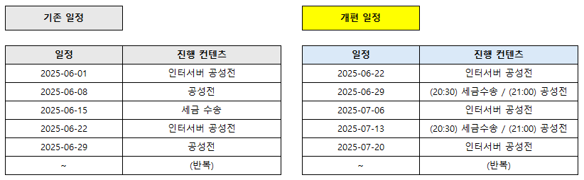 4. 공성전 / 세금수송 / 인터서버 공성전 스케줄 조정 안내