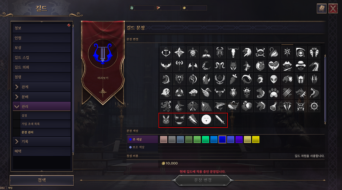 - 길드 레벨 30부터 사용 가능한 길드 문장 5개가 추가되었습니다.