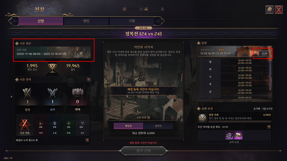 - 전장 매칭 가능 시간 및 일정 표시 방식이 변경되었습니다.