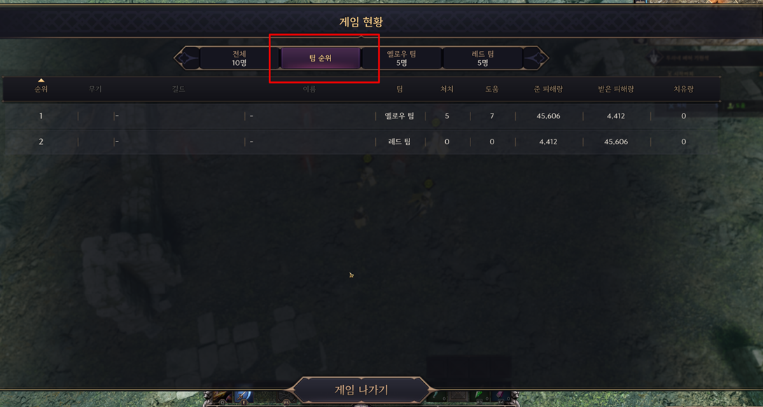 - 모의 전장 결과 창을 팀별로 합산해서 수치를 확인할 수 있는 기능이 추가되었습니다.