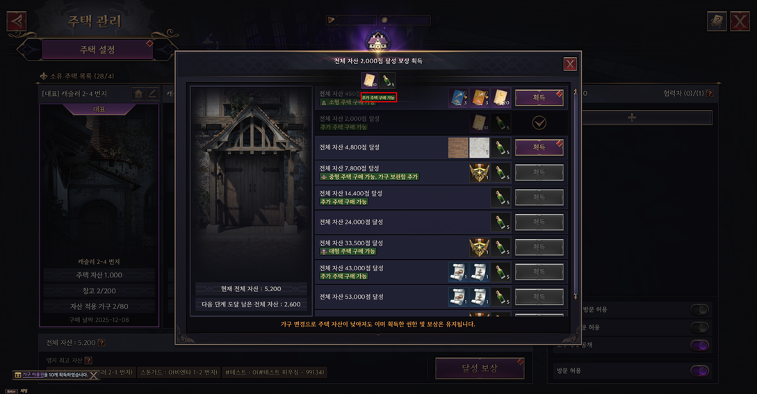 - 캐슬러 3-4 주택 일부 벽면에 가구를 배치할 수 없는 현상을 수정했습니다.