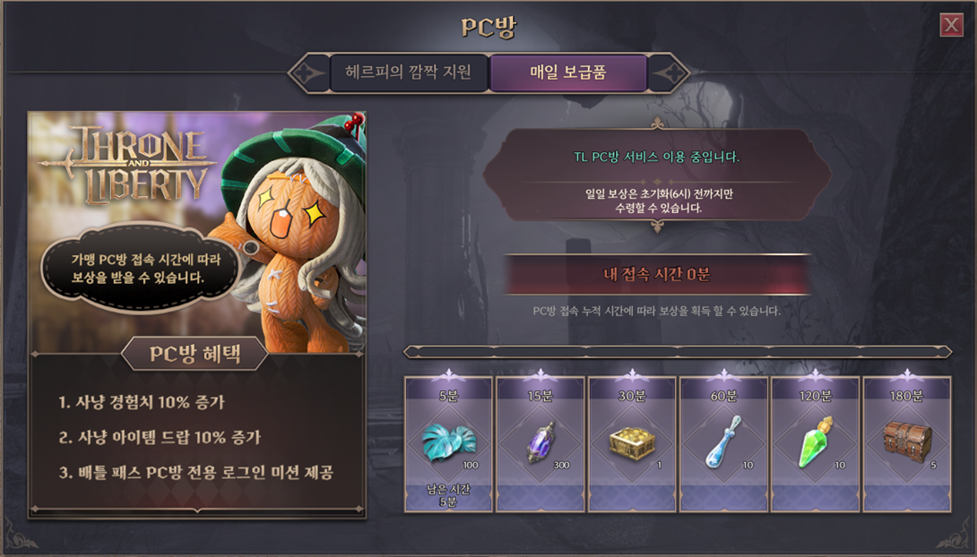- 프리미엄 PC방 누적 시간 및 혜택은 캐릭터 기준이며, 계정 간 공유되지 않습니다.