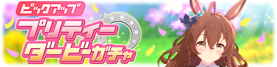 「픽업 프리티 더비 가챠」에서는 새로운 육성 우마무스메가 등장합니다. 「픽업 서포트 카드 뽑기」에서는, 「3월 생일」의 캐릭터의 서포트 카드가 픽업으로서 등장합니다. 픽업 기간 중에는 대상의 육성 우마무스메와 서포트 카드의 제공 비율이 올라갑니다.
