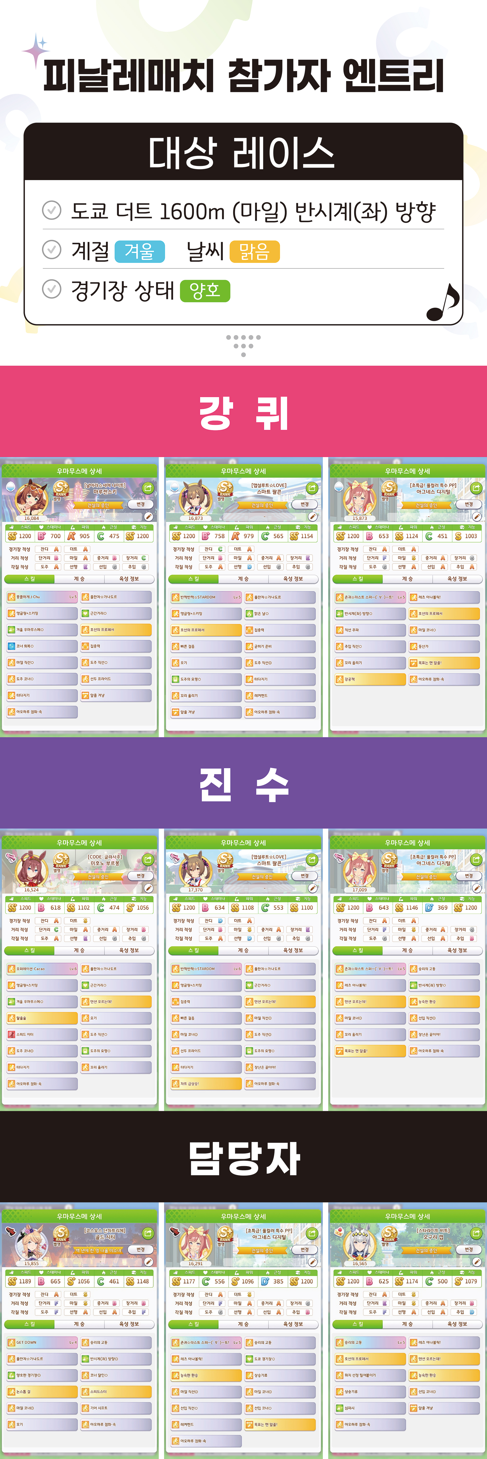 - 행사 내 모든 룸 매치 대상 레이스는 「챔피언스 미팅 아쿠아리우스배」와 동일합니다.