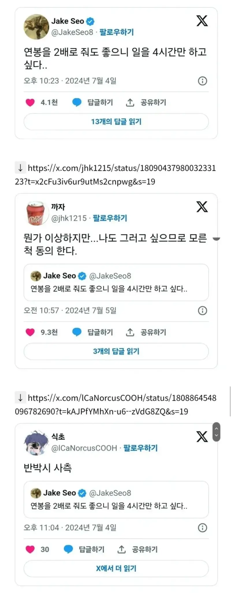 연봉을 2배로 줘도 좋으니 일을 4시간만 하고 싶다.
