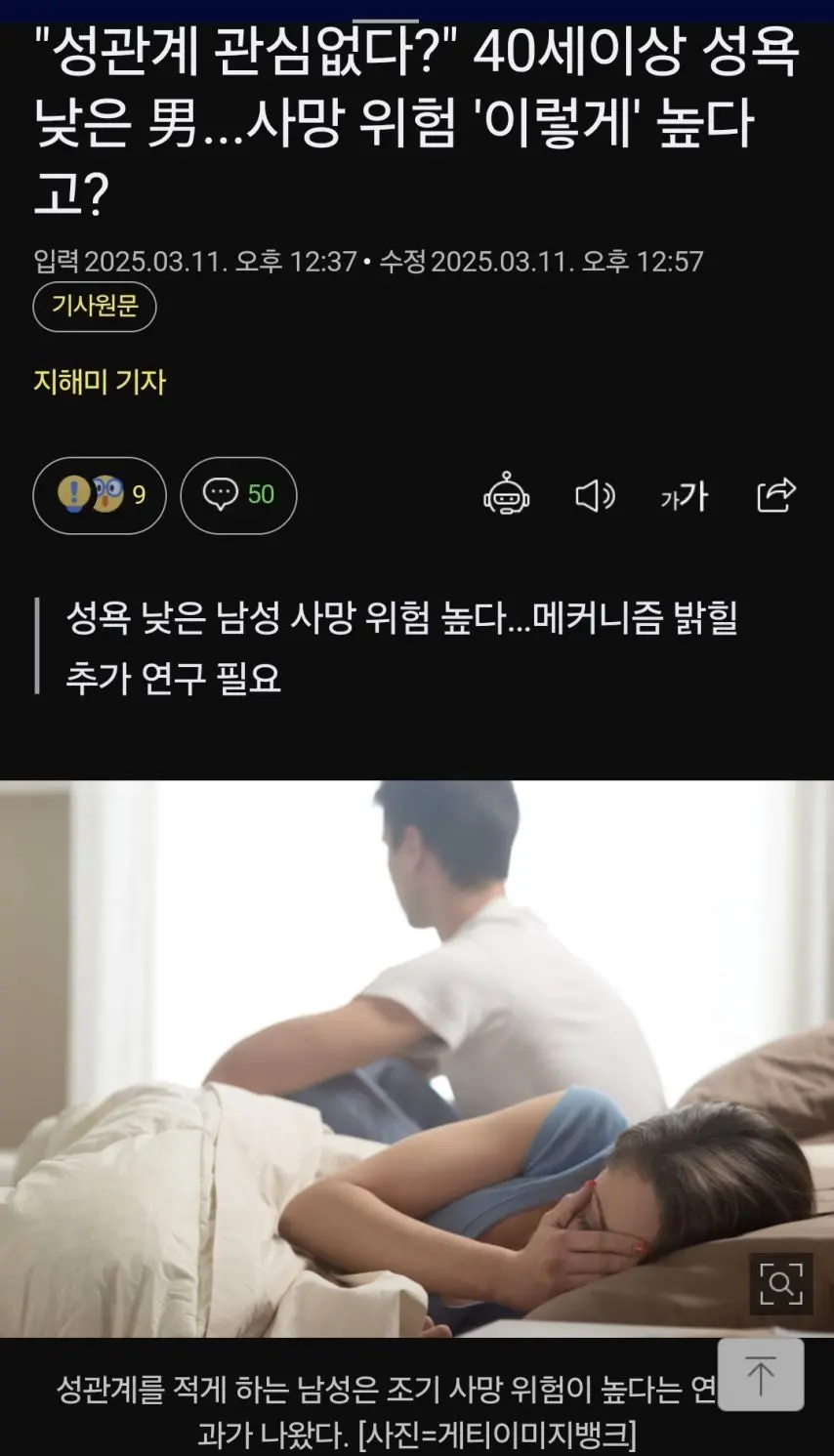 "성관계 관심없다?" 40세이상 성욕낮은 男...사망 위험 '이렇게' 높다고?