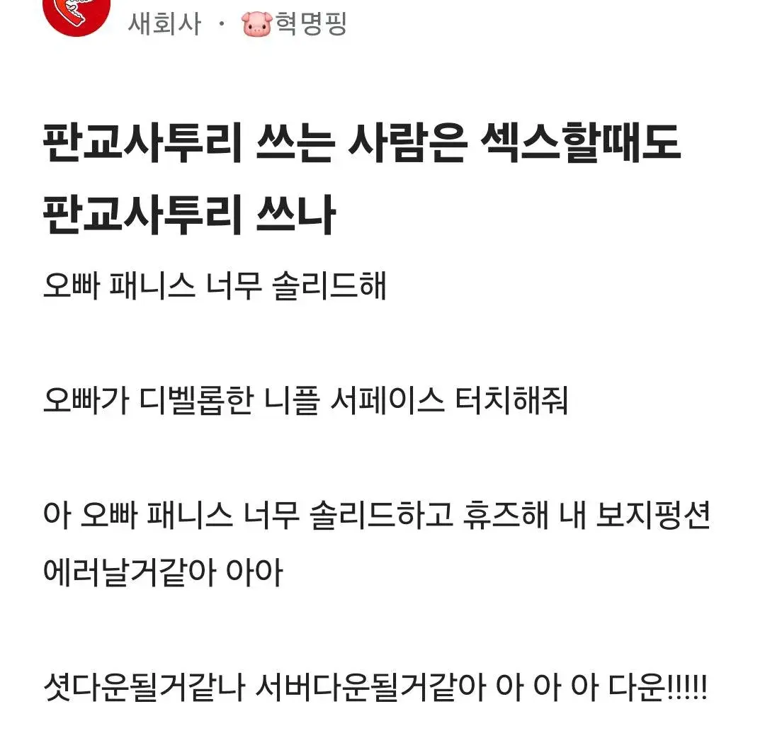판교 사투리 쓰는 사람은 야스할 때도 쓰나