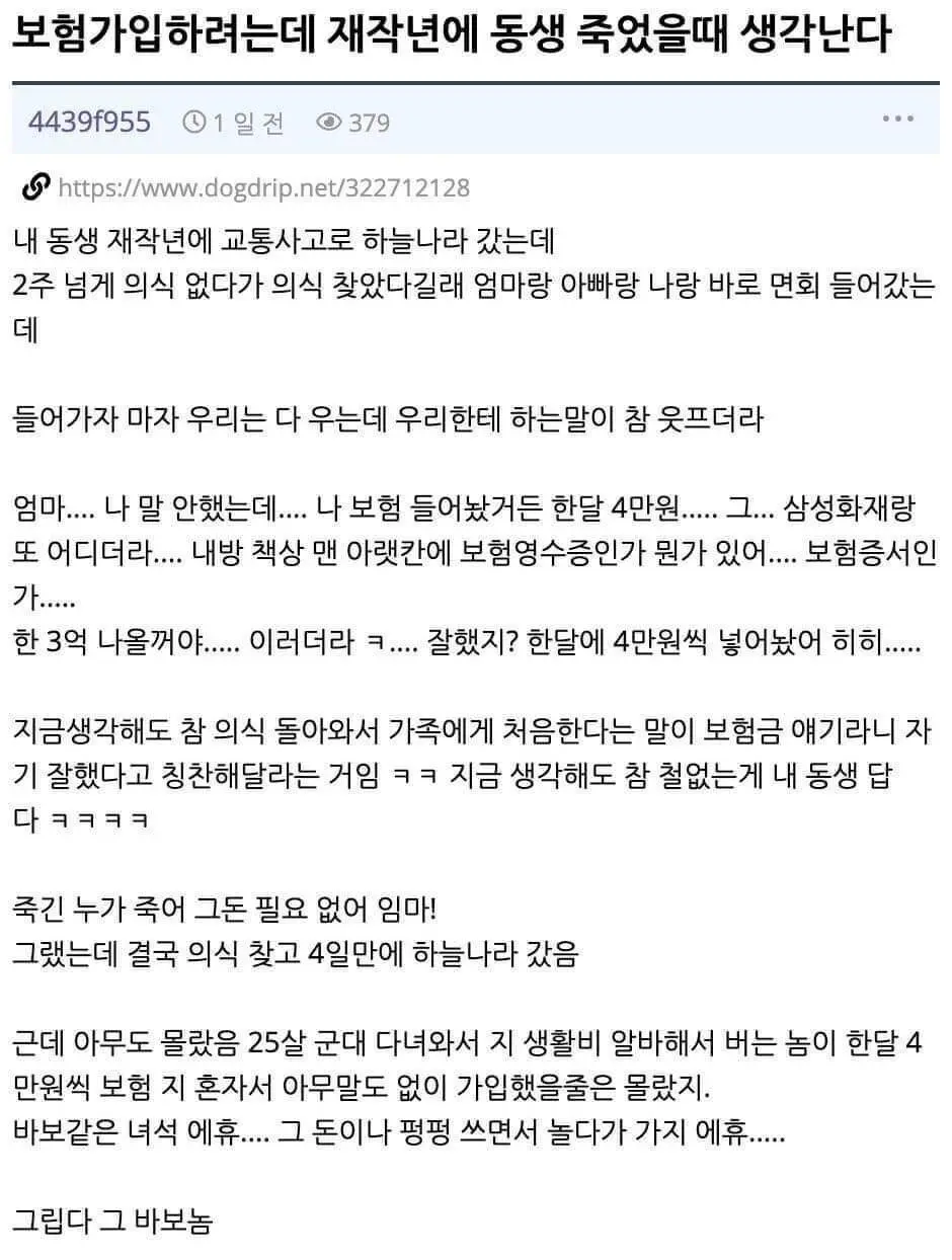 보험 가입하려는데 동생 생각난다