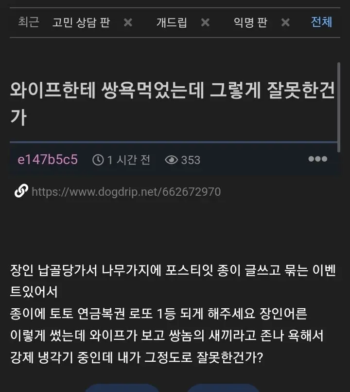 추석 장인 납골당에 쌍욕먹은 개붕이