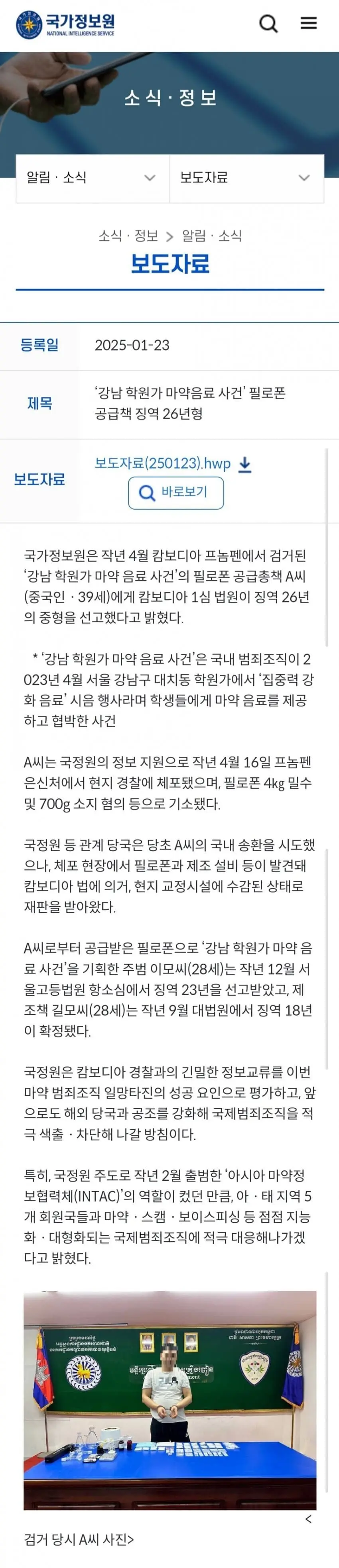 국정원 정보 지원으로 2024년 4월에 총책을 잡았는데