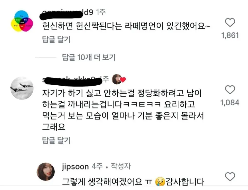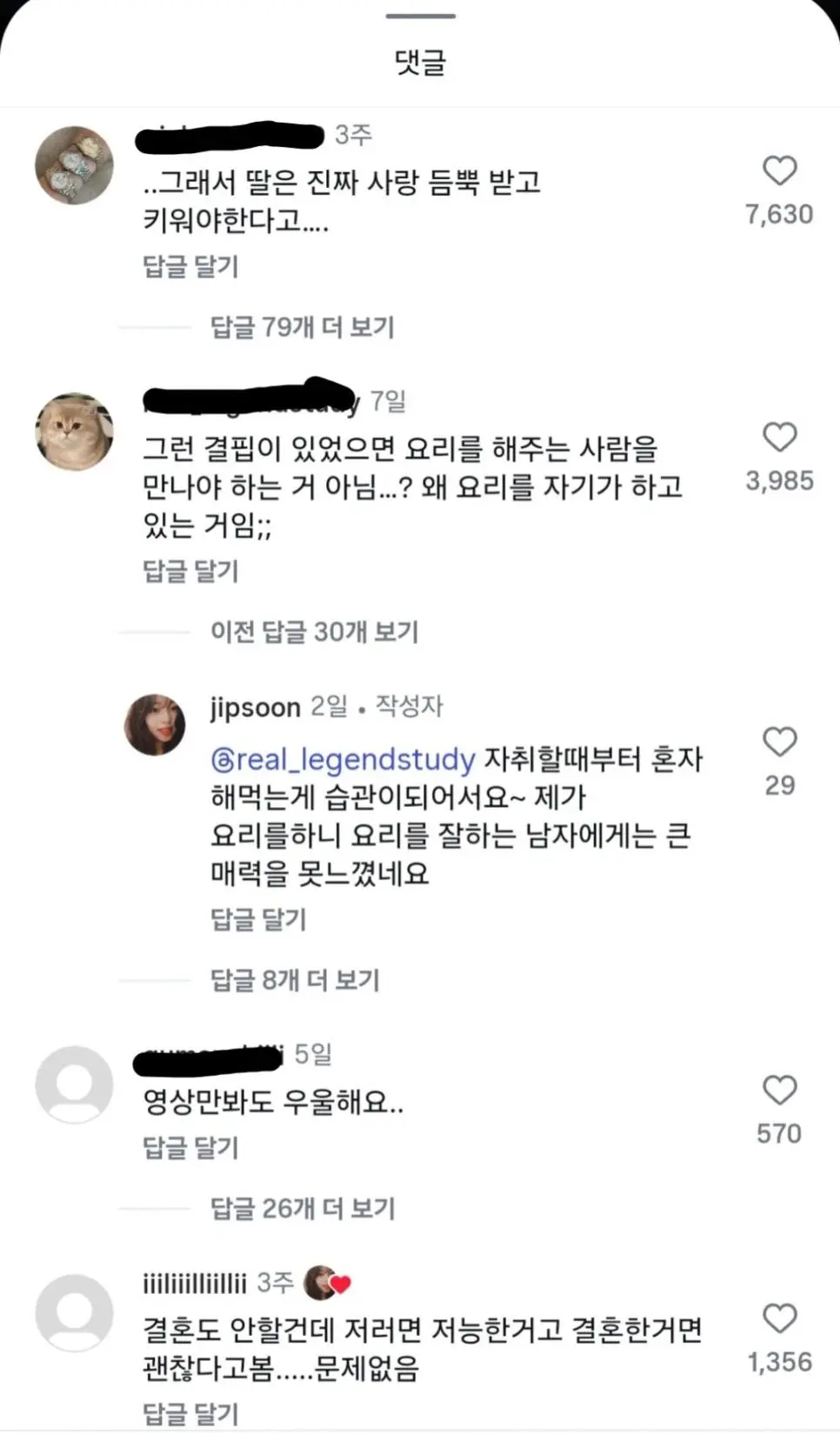 남편을 위해 요리하는 여자 인스타 댓글창 난리난 이유