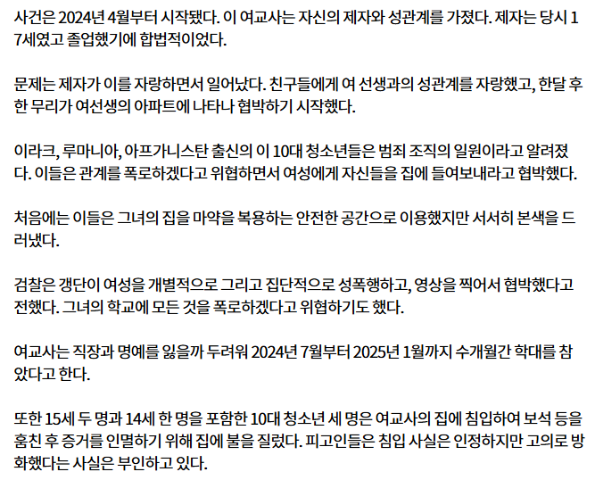 28세 여교사 제자와 성관계 ‘일탈’→친구들에게 자랑, 결국 성노예로 전락 ‘충격’