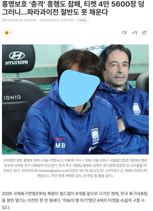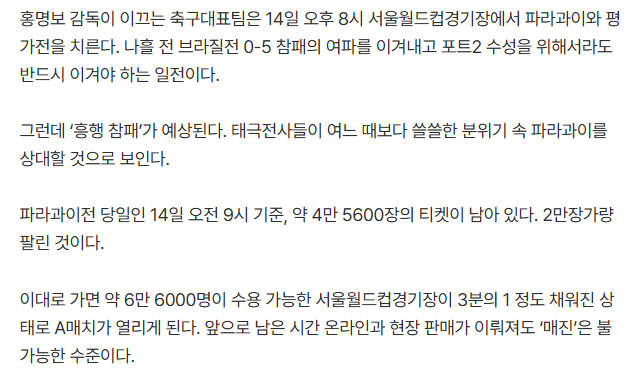 홍명보호 충격 흥행도 참패, 티켓 4만 5600장 덩그러니