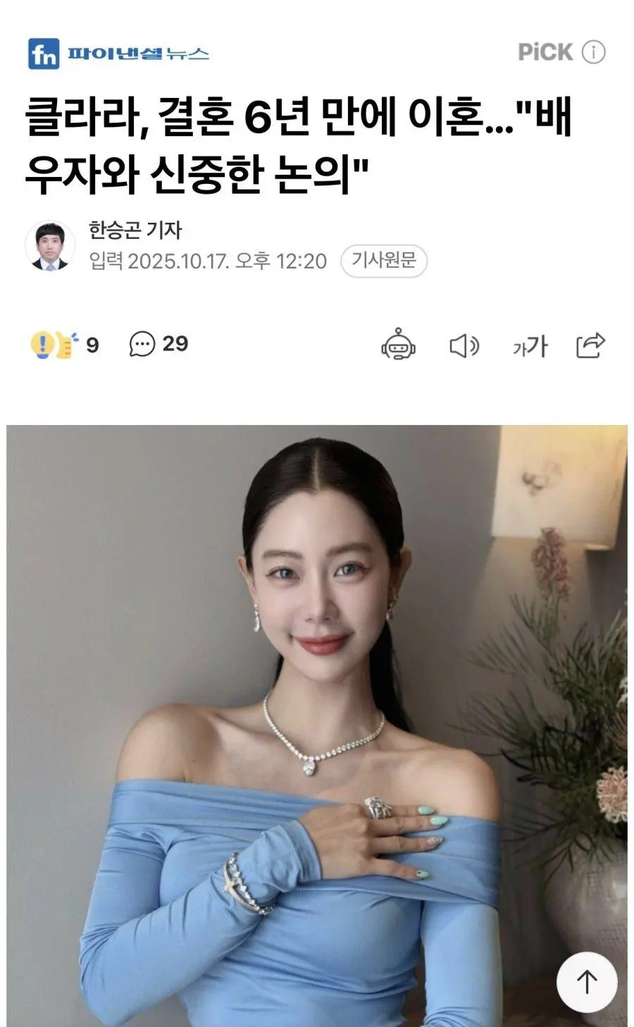 클라라, 결혼 6년 만에 이혼…"배우자와 신중한 논의"