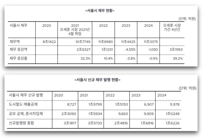 오세훈, 서울시 채무 줄였다? "취임 후 3조 증가 눈속임"