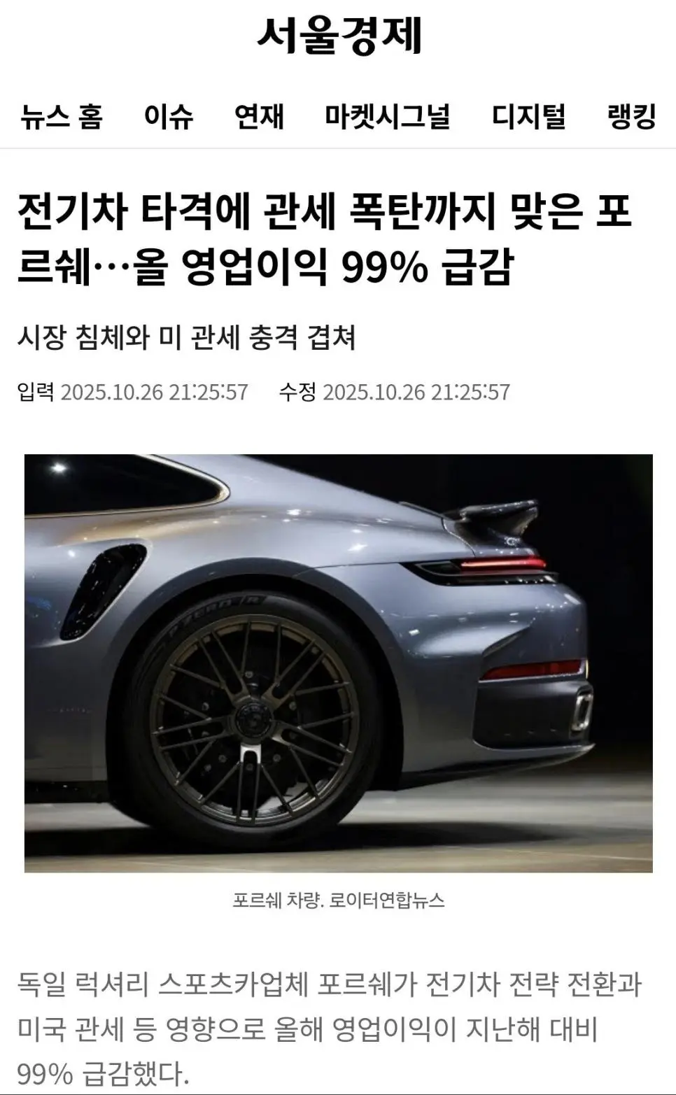 전기차 타격에 관세 폭탄까지 맞은 포르쉐…올 영업이익 99% 급감