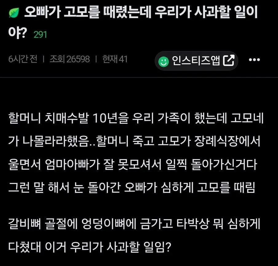 오빠가 고모 팼는데 이거 잘못한거임?