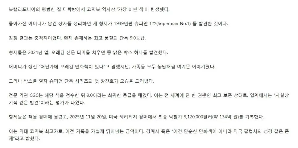 어머니 유품 정리하다가.... 역대 코믹북 최고가 갱신