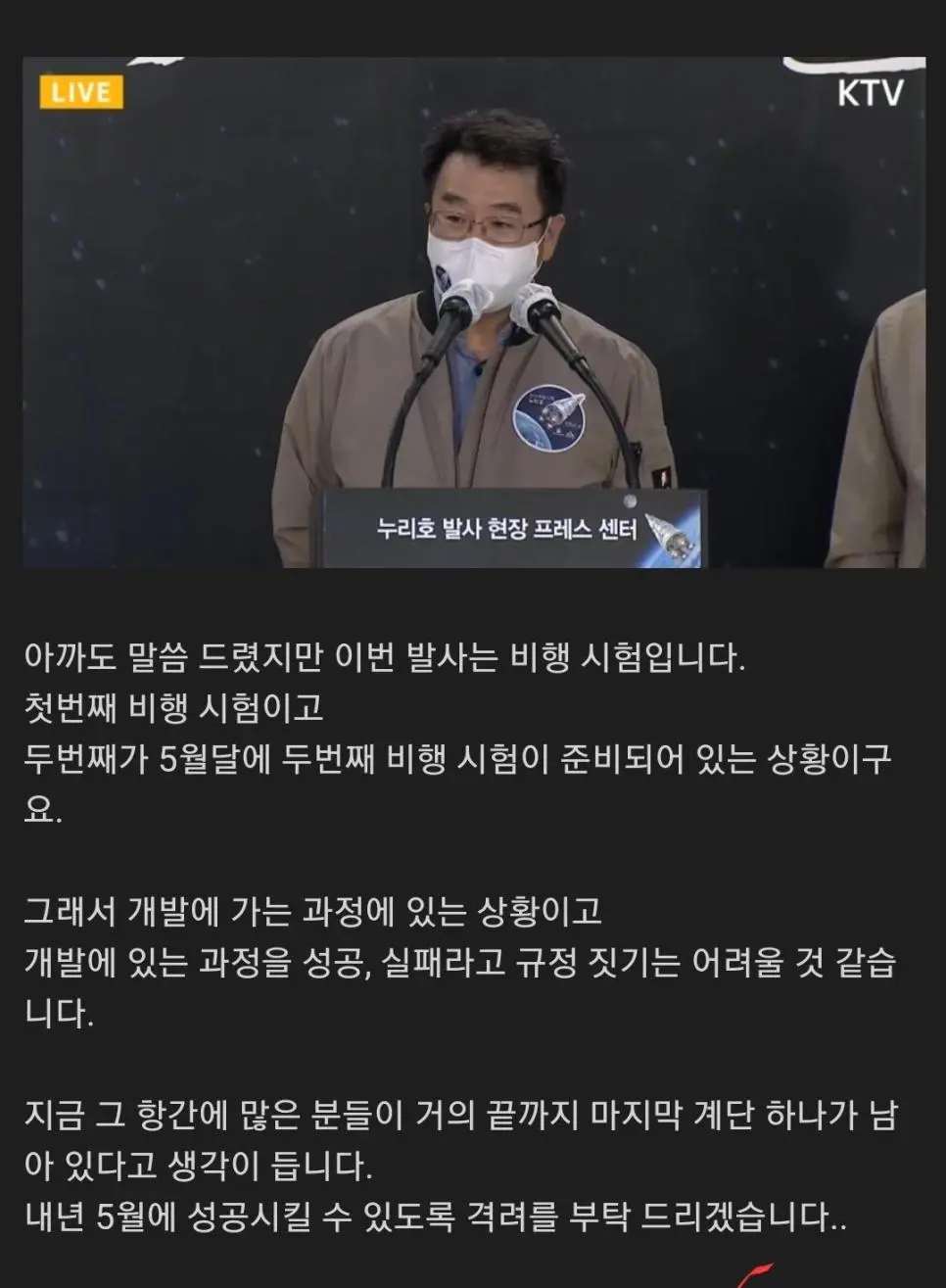 누리호 브리핑 마지막에 울컥한 과기부 정책관