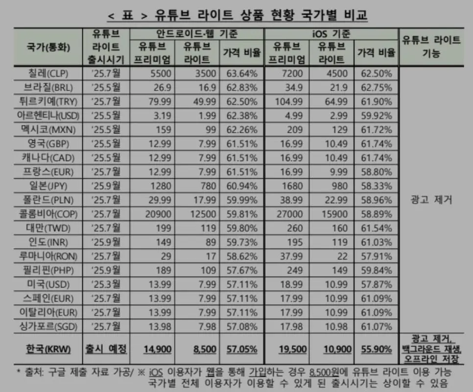 [오피셜] 유튜브 프리미엄 라이트 월8500원