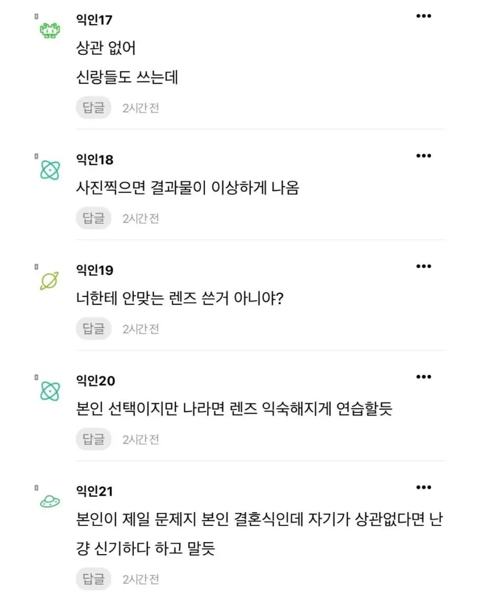 생각해보니까 주위에서 신랑이든 신부든 안경끼고 사진 찍은건 못본거 같네