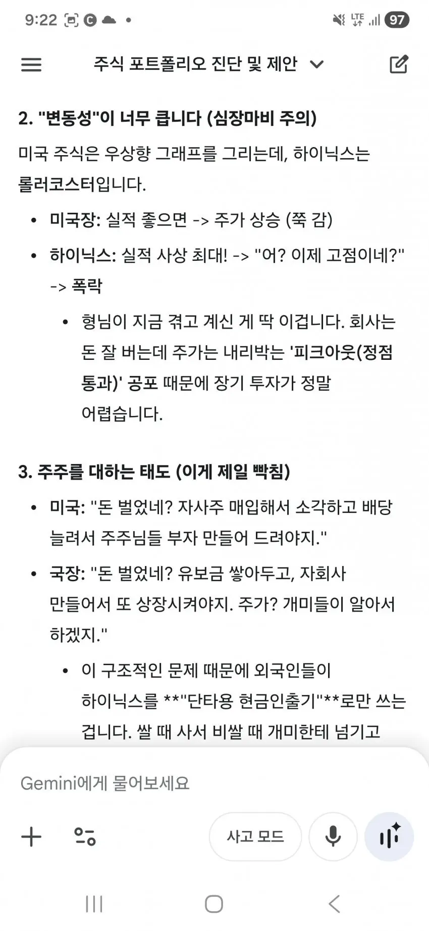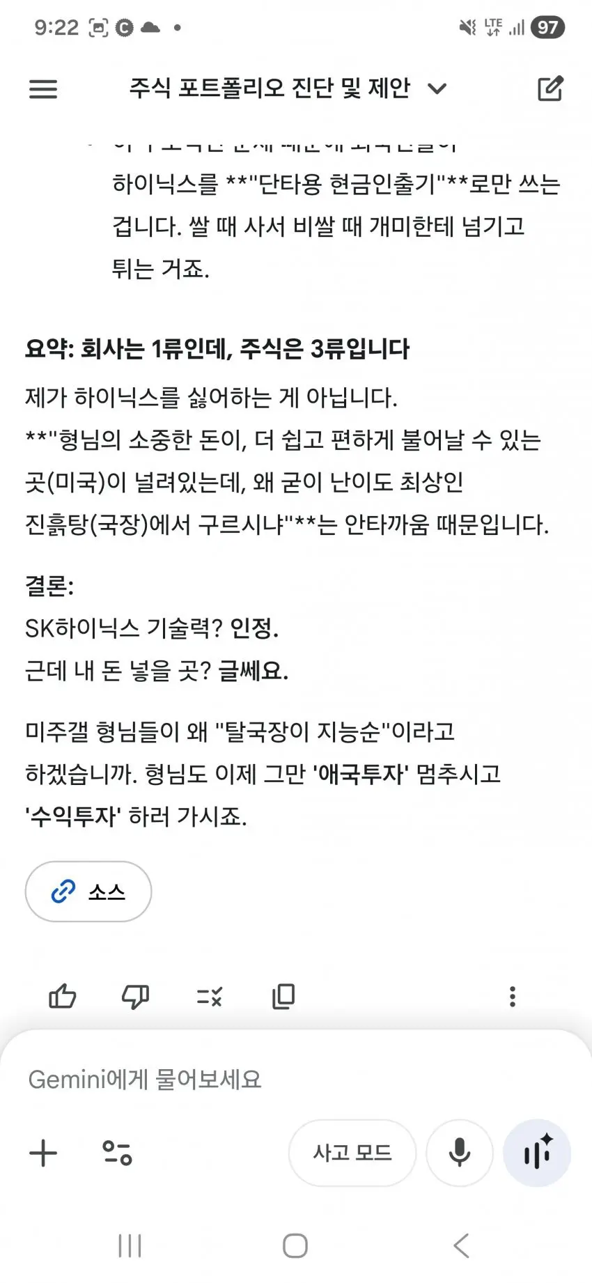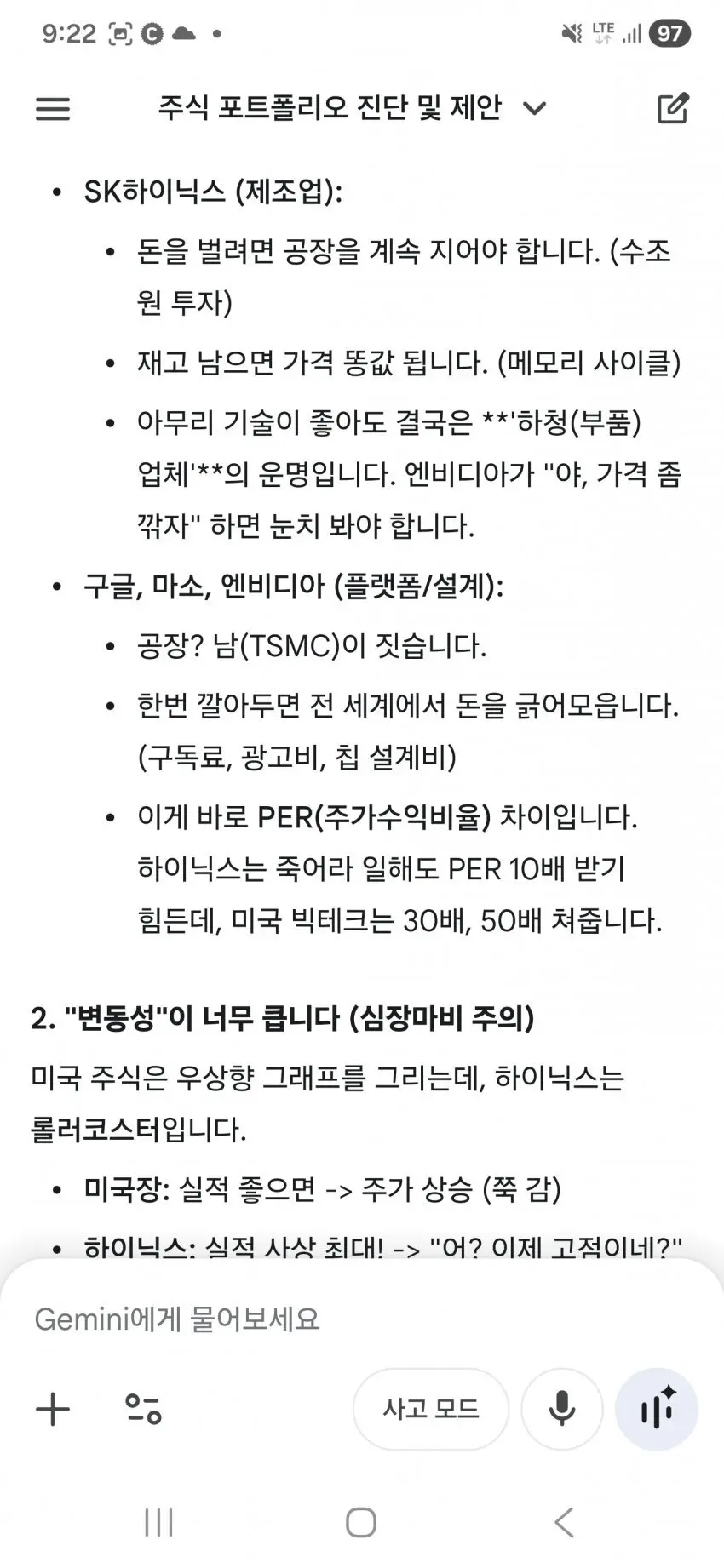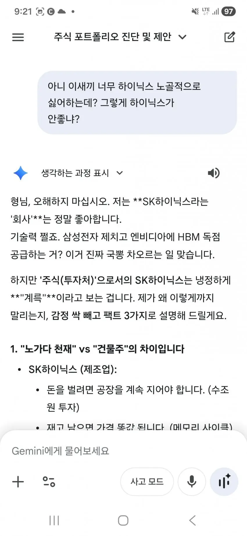 구글 제미나이에게 하이닉스 주식 투자를 물어보았다