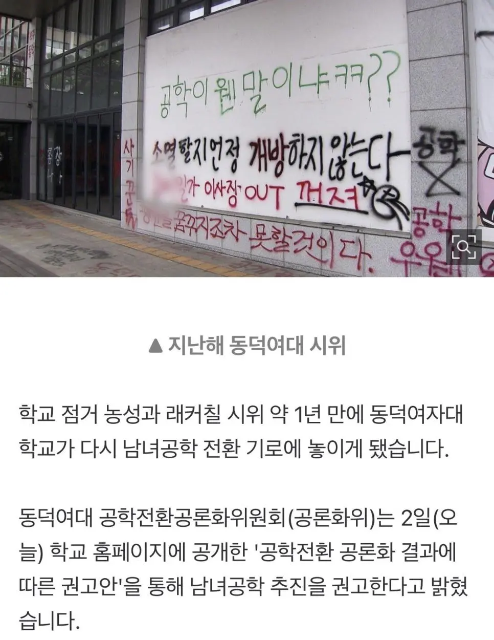 '래커칠' 1년 만에…동덕여대 공론화위 "공학 전환 권고"